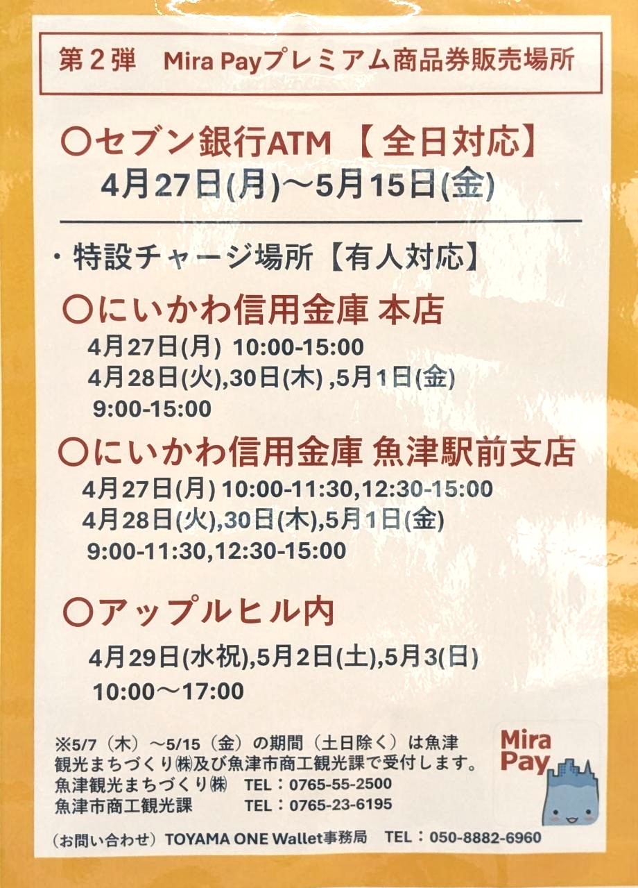 ミラペイプレミアム商品券販売